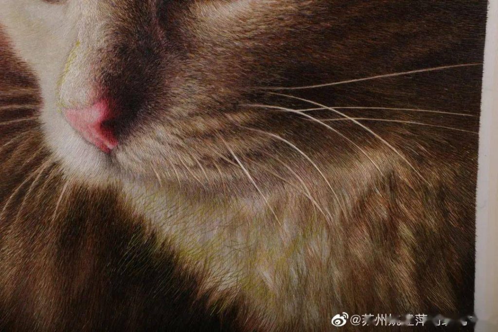 Yao Jianping’s embroidery does not limit itself to tradition. She combines methods from Chinese ink painting, sketching, watercolor, oil painting, and colored pencils with classical Suzhou embroidery techniques, creating works that are vivid, natural, and lifelike.