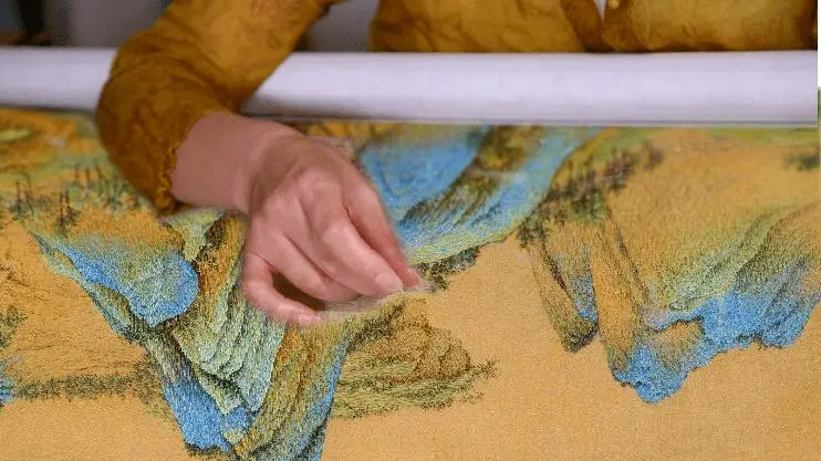In 2011, Yao Jianping’s monumental embroidery, the reunited scroll of Dwelling in the Fuchun Mountains, sold for 47 million RMB.