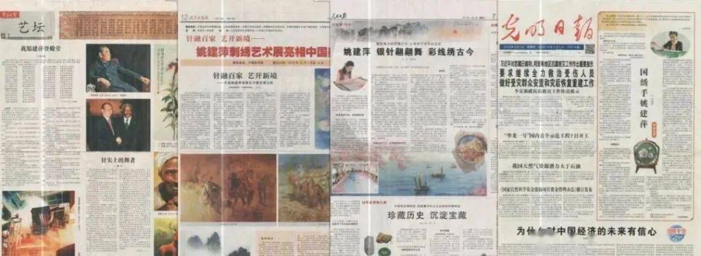 Her hand embroidery has received extensive coverage in China’s most authoritative media outlets, including People’s Daily, Xinhua Daily, Guangming Daily, and People’s Political Consultative Daily.