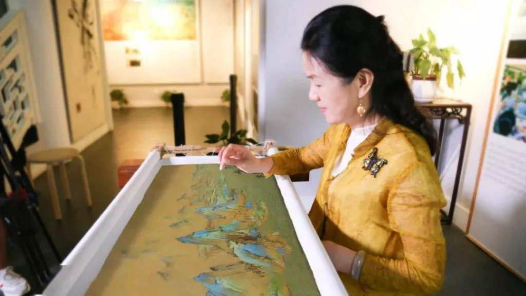 To commemorate the 600th anniversary of the Forbidden City, Yao recreated the national treasure A Thousand Miles of Rivers and Mountains in embroidery.